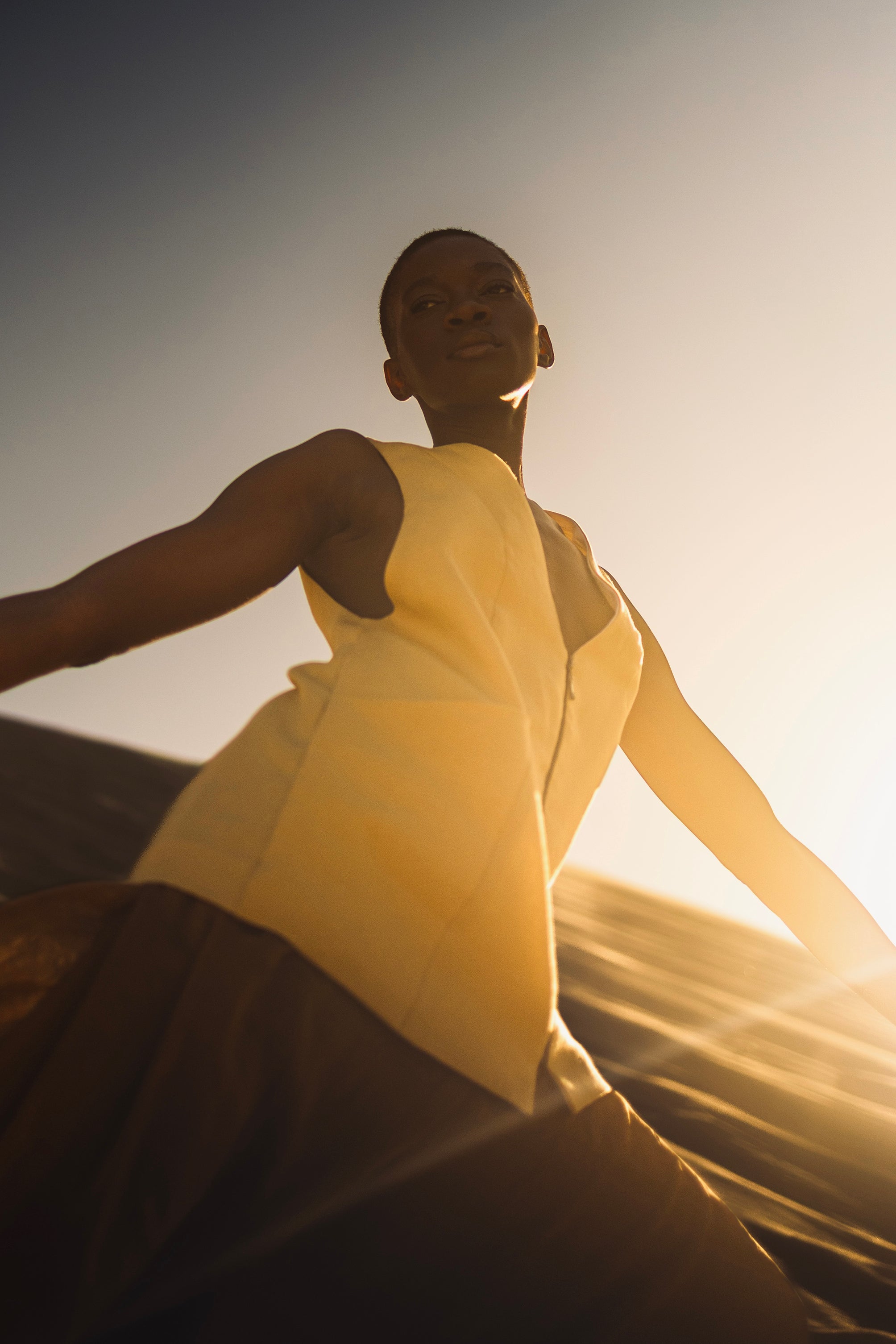 La coupe, volontairement épurée, permet de porter cette robe comme un gilet structuré ou comme une pièce centrale. Son zip discret — une empreinte que l’on retrouve sur plusieurs créations de Monica Nogueira — trace une ligne forte qui structure la silhouette et affirme l’identité de la pièce. Elle peut se porter seule pour une allure minimaliste ou s’associer au Short Saïra pour un ensemble cohérent.