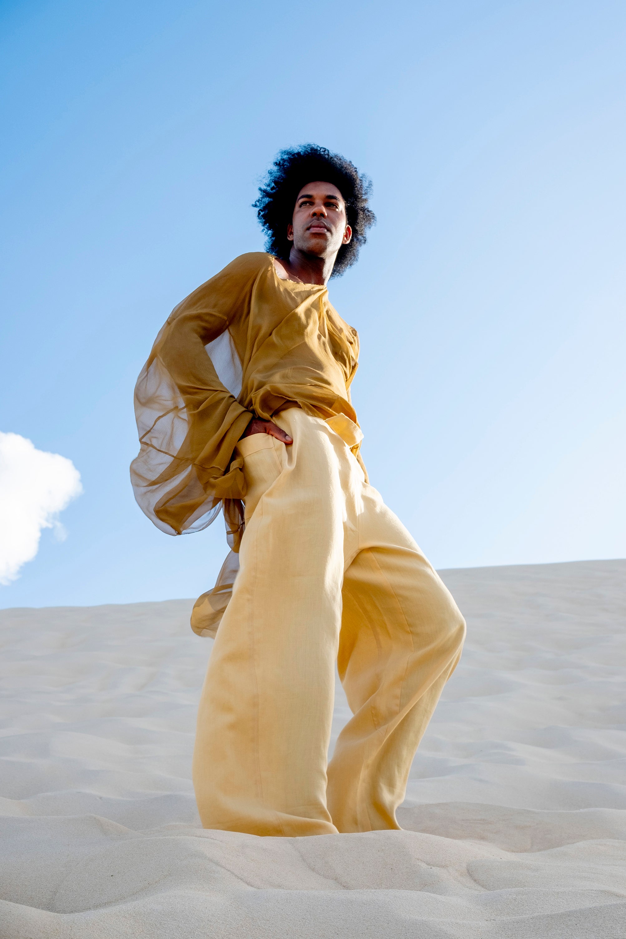 Sa coupe ample, pensée pour accompagner le mouvement, donne à celui-ci une allure sculpturale et aérienne.Associé à d’autres pièces en lin ou porté seul, le pantalon Namib propose une silhouette moderne, lumineuse et contemporaine.